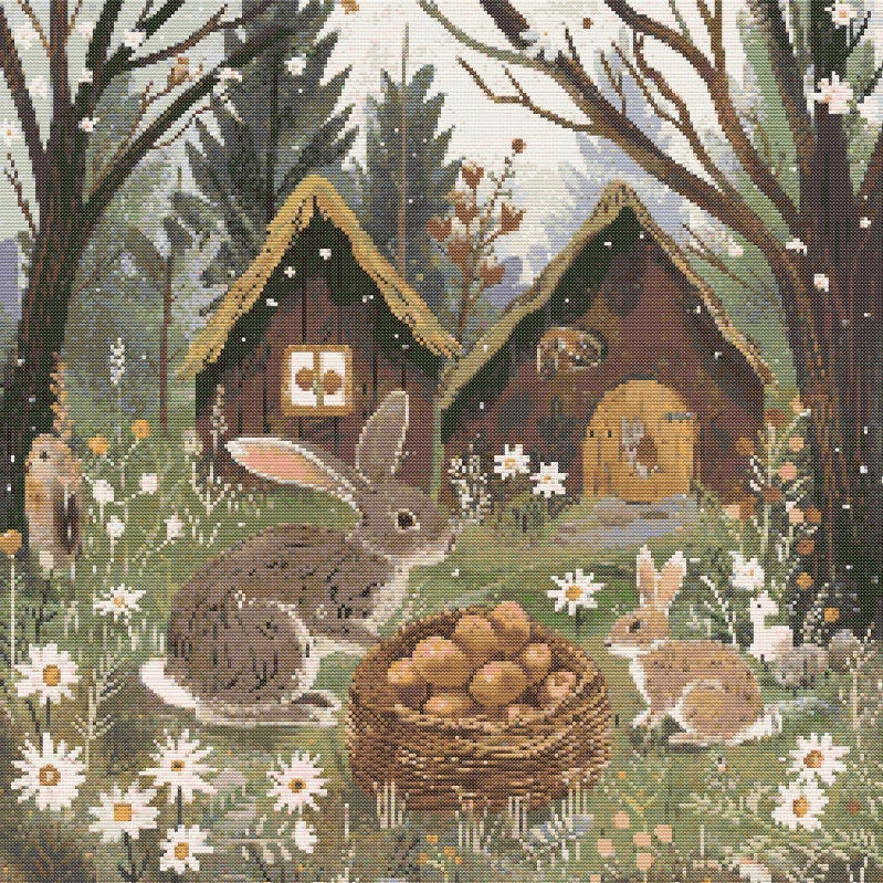 Scandinavian Easter Bunny Scene 2 Cross-Stitch Pattern Digital Download
