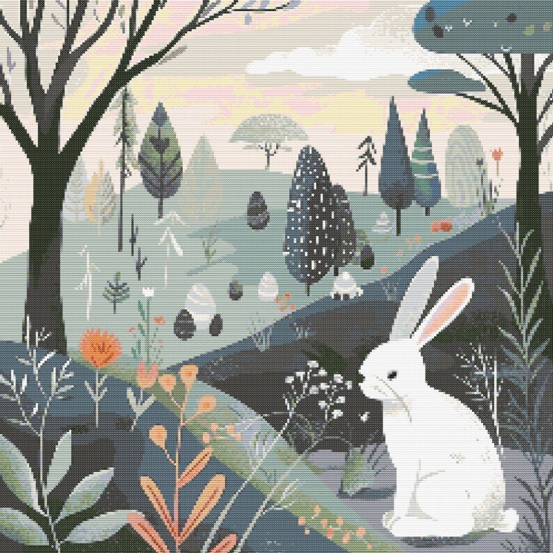 Scandinavian Easter Bunny Scene 7 Cross-Stitch Pattern Digital Download